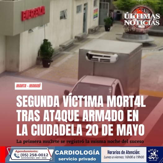 Recordar que la mujer, de 38 años de edad, fue víctima del ataque armado pasadas las 12:00 de este jueves 8 de febrero de 2024 cuando viajaba en el vehículo ejecutivo junto a otras personas, entre ellas un menor de edad, en la vía Manta-Montecristi, cerca del ingreso a La Pradera, cuando recibió varios disparos de armas de fuego justo en el momento que el automóvil detiene la marcha por la luz roja del semáforo frente a mencionado nosocomio, lo cual fue aprovechado por los delincuentes para cometer el hecho violento.