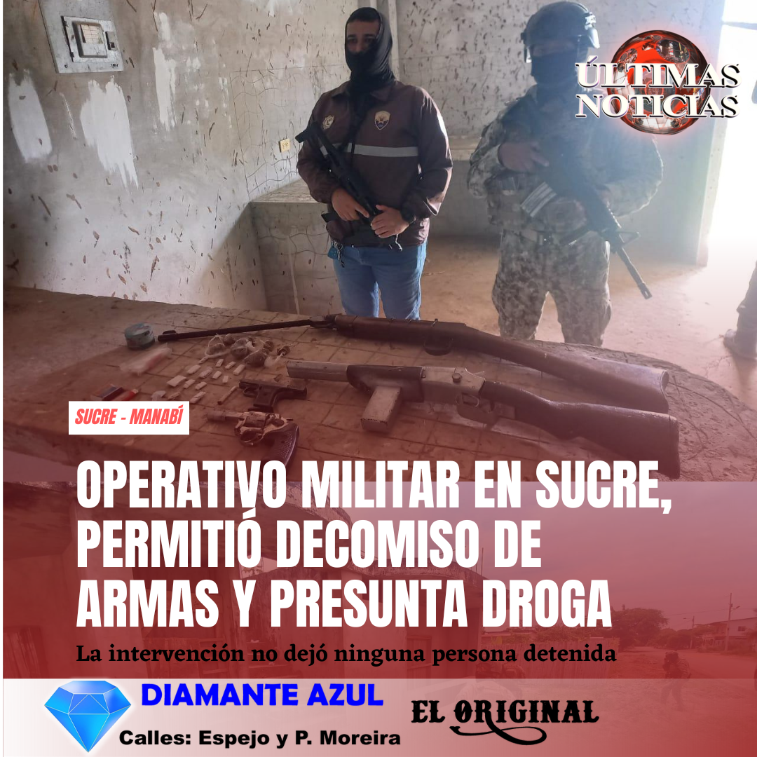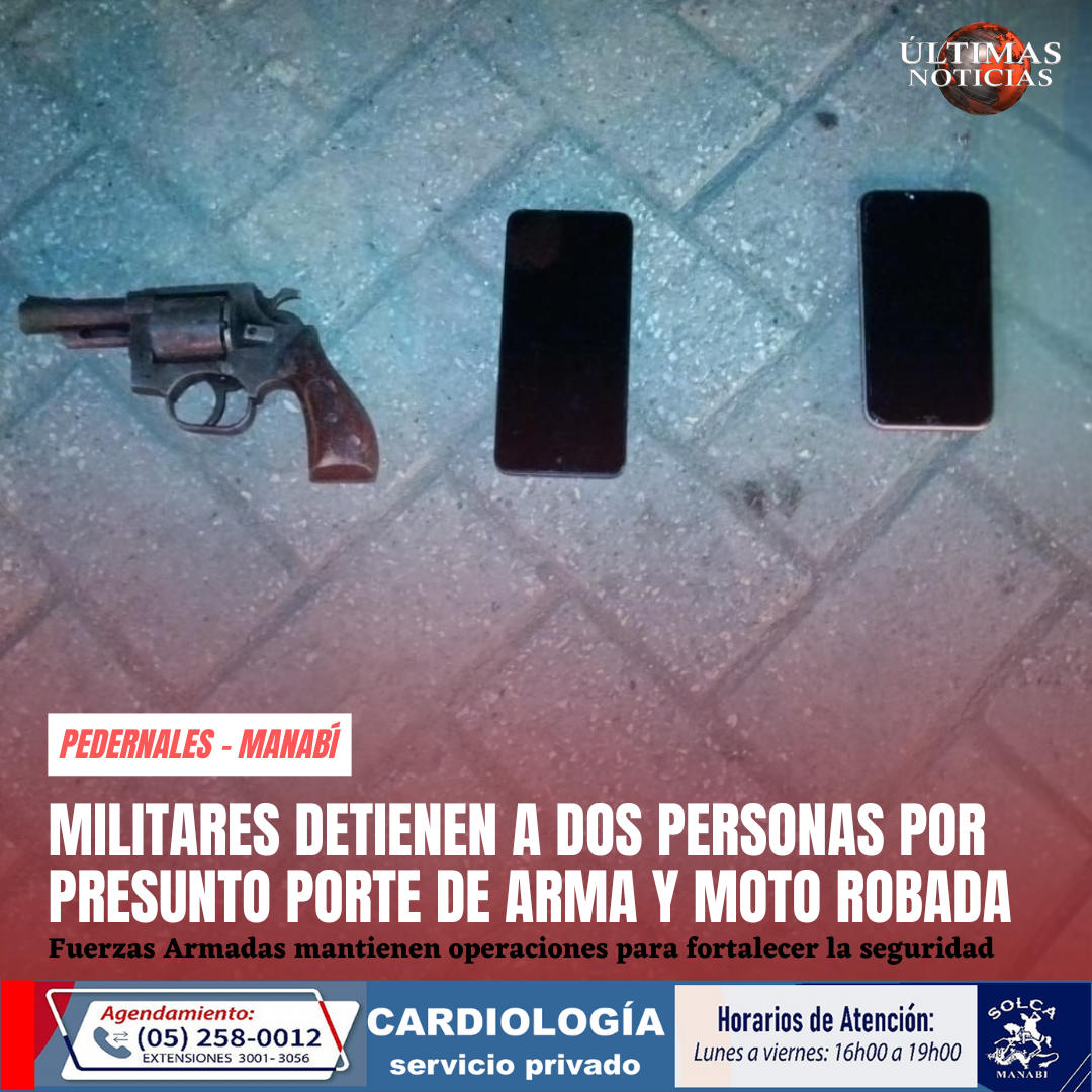 Gracias a información de inteligencia y con las investigaciones previas, el personal de Fuerzas Armadas logró la detención de dos presuntos delincuentes, así como también el decomiso e incautación de armas de fuego durante operaciones militares realizadas en un importante sector del cantón Pedernales, provincia de Manabí.