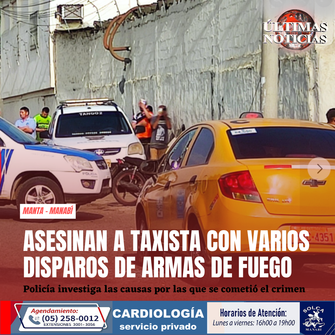 Cerca de las 12:00 de este jueves 8 de febrero de 2024, presuntos delincuentes que se movilizaban en un vehículo atentaron contra la vida de una mujer que viajaba en un taxi, a quien le dispararon por reiteradas ocasiones. El hecho se registró frente al Hospital del Seguro Social en la ciudad de Manta, provincia de Manabí.